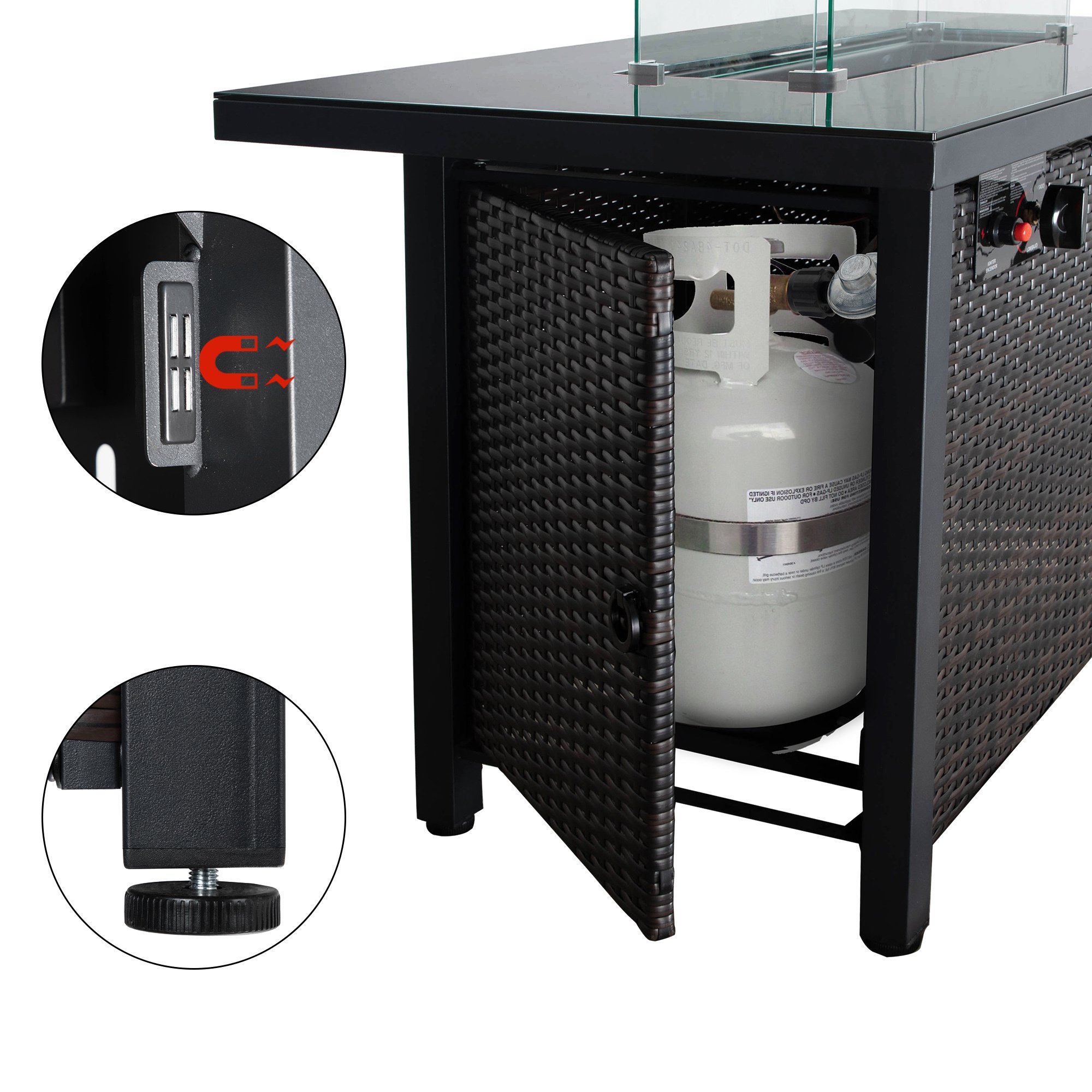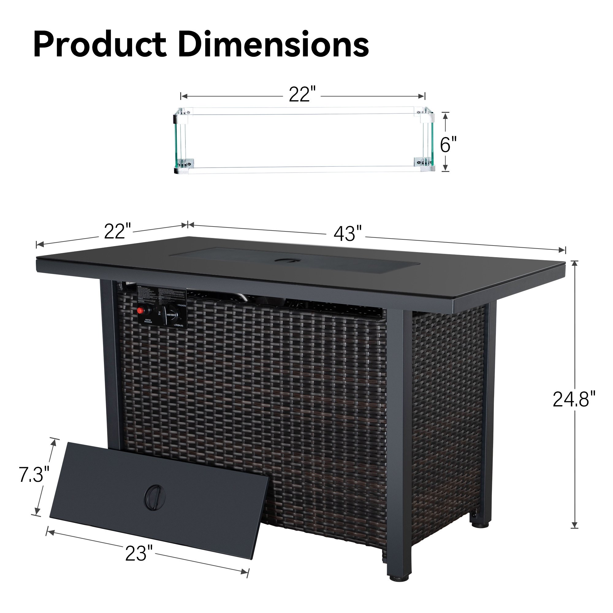 Home > 43“ L x 22" W x 25" H Rattan Propane Outdoor Fire Pit Table with Lid; 50000 BTU Gas Firepit with Blue Glass Beads and Glass Wind Guard