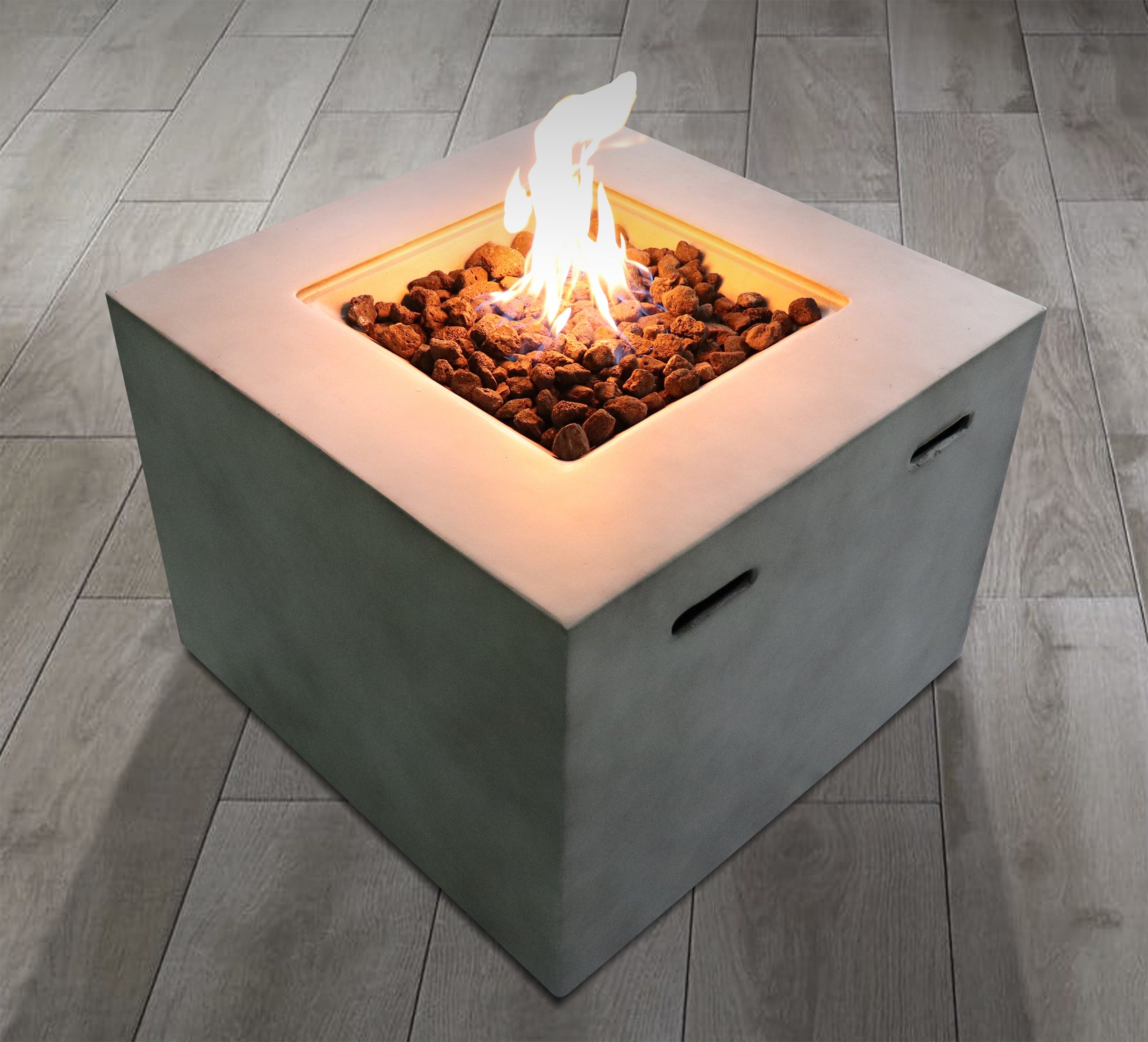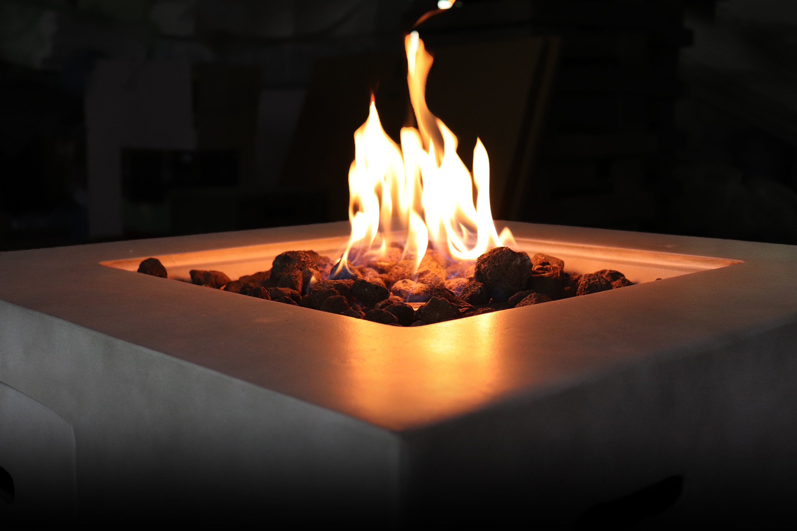 FeaturesProduct TypeFire pit tableExterior MaterialConcreteExterior Material DetailsFiber-reinforced concreteBurning Area MaterialStainless SteelPowder Coated FinishYesFuel TypePropane; Natural gasGas Conversion FeatureYesGas Conversion Kit IncludedNoAdjustable FlameYesIgnition TypePush-buttonBTU Output40000 BTUCompatible Filler TypeLava RocksFiller IncludedYesFoldableNoPortableNoCover IncludedYesSpark Screen IncludedNoLog Grate IncludedNoLocationOutdoor Use OnlyHidden Fuel TankYesBatteries RequiredYesOverall ShapeSquareSupplier Intended and Approved UseResidential Use; Non Residential UseProduct SizeMediumImportedYesBattery or Batteries IncludedYesCompatible Fuel Size20 lb.DurabilityRust Resistant; Heat ResistantProduct CareCover The Firepit When Not In UseColor (Concrete Finish)ConcreteCover MaterialPolyesterSpecificationsSafety Listing(s)ETL Listed; UL Listed; CSA CertifiedAssemblyAssembly RequiredNoWarrantyCommercial WarrantyYesCommercial Warranty Length1 YearProduct WarrantyYesWarranty Length1 YearFull or Limited WarrantyLimitedWarranty DetailsManufacturer Warranty